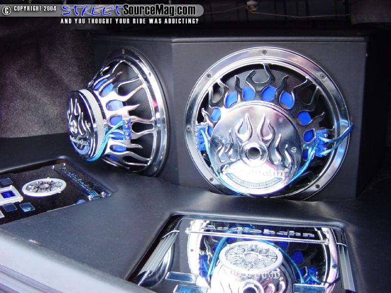 Not only does this bar add strength to the unibody, but also its chrome finish looks good in any interior. For sound, a Panasonic head unit feeds a pair of Audiobahn 12" subs and two Audiobahn amps with a few trim panels to clean up the trunks looks. To stick the car to the ground in corners, a set of Koni 5-way adjustable struts and Goldline lowering springs were chosen. To stiffen this a bit, an APR front upper strut bar, Top Speed lower rear control arms and a full camber correction kit round out the full suspension.