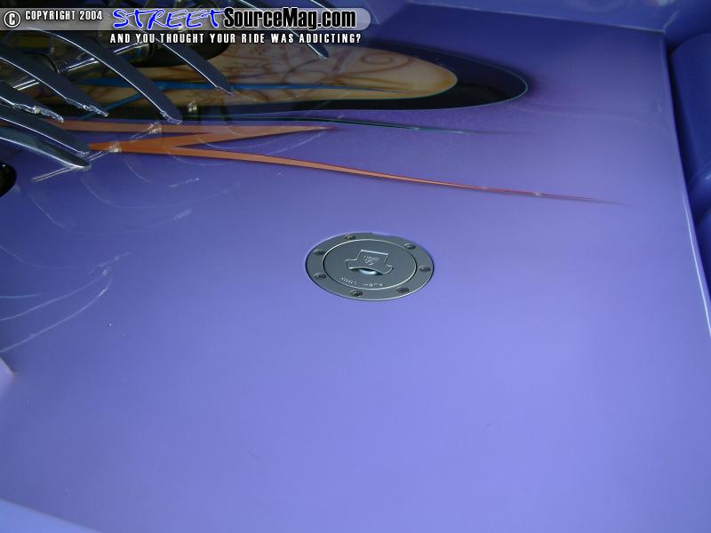 Not yet done with the modifications, the front bumper would then be molded to the valance and the door handles would be junked for sheet metal.   With the normal modifications already complete Charles would have the firewall and bed cab walls all smoothed out. A Wabesto electric sunroof was also installed by Rich at Vinyl Top Specialists along with the tonnue cover being embossed with a Tyrannosauruses Rex skull incorporated into the soon to be added graphics.