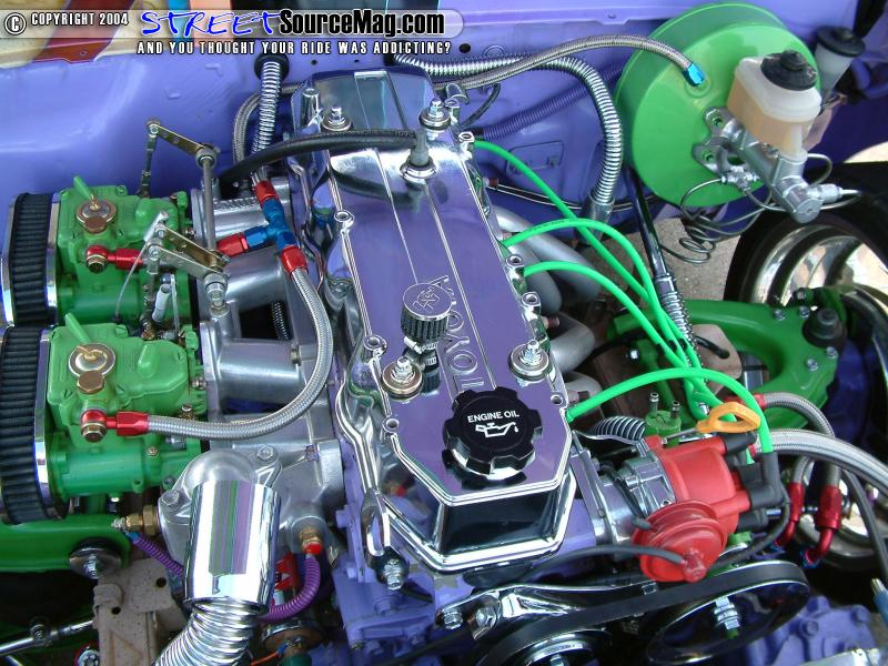 With the already chromed, powder coated and painted chassis, the 22re engine would now need to fit in with the rest of the build up. Charles would have many items painted and chromed along with installing many performance items.   For starters a Downey off road header would be installed to start the exhaust system while the HPC finished 2 ½ inch exhaust capped with a Magnaflow stainless muffler finishes things off.