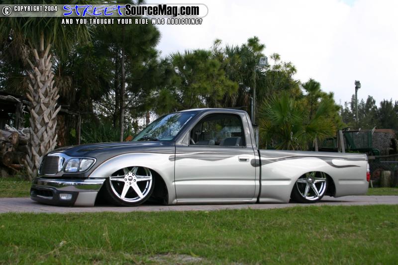 A RAW one piece molded gauge pod housing a set of Autometer air gauges is found in the driver pillar. For tunes on those long daily drives, a Kenwood MP-522 MP3 player installed into the dash. The interior paint would be handled by RAW and the wrapping done by Tony. Keeping the engine clean and simple, Tony would change up the alternator and have it boosted to 120 amps to handle the stereo and battery charged needs for the suspension. A polished intake is then found installed for that clean look and added performance. Thanks goes out to his boy Shaune Lewis who handled the fab work on the truck, Corey who started the body work and Anthony Rhodes who finished the paint and bodywork, Troy for stressin', mom for stayin' up late the week before Blooddrag for the seats, Kenny for makin us laugh and to ME (Garrick) for tryin to keep him laughin all weekend knowing what he was dealing with. And last but not least to all his club members of Relaxed Atmosphere!