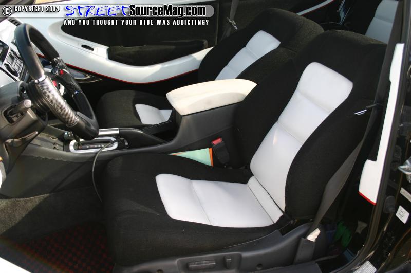 The headliner was fitted with black tweed, while an APC steering wheel was bolted up. The seats where capped off and wrapped in black tweed and white vinyl. The upholstery was done by Albany Auto Trim.