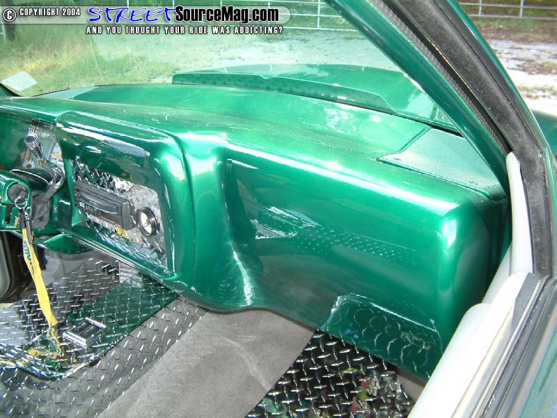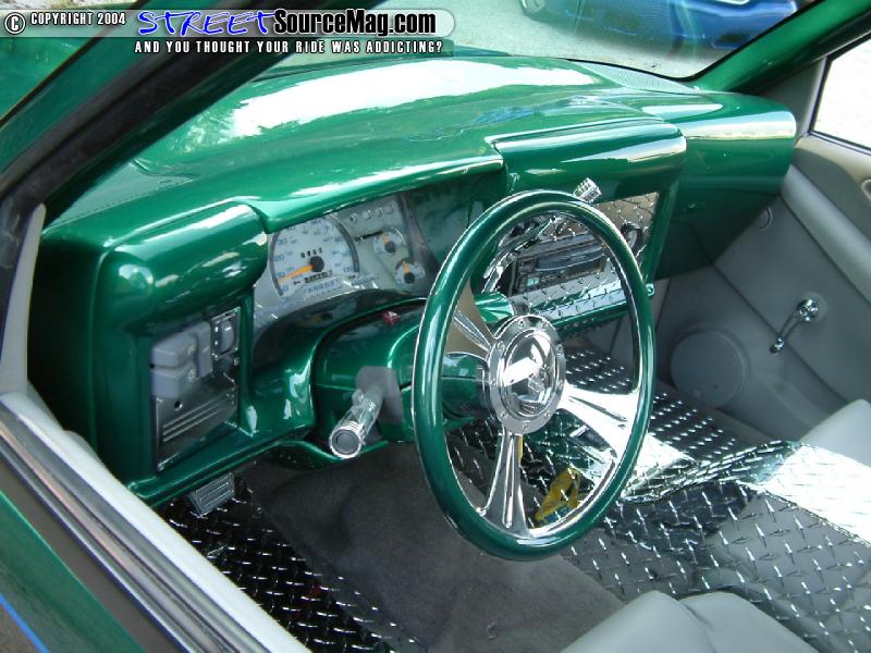 All aluminum diamond plate center console, floor mats and back wall would then be handled while a Billet Specialties steering wheel helps tie things together. The seats, doors and headliner would all be stitched by stretch of Sew Custom Interiors of Lebonon, TN.