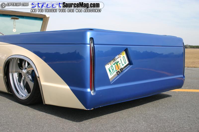 The up’s and down’s of Tito’s S-10 are provided by a fast bag air ride setup. AON Customs built the 2x4” square frame. The setup has a 36” ladder bar setup. Tito also opted to go with rear shocks for a smooth ride. The suspension also has Belltech 3” drop spindles. Tito’s truck rolls on a 18/20” wheel combo. The wheels are American Eagle 212’s and they are wrapped in Nitto low profile rubbers.