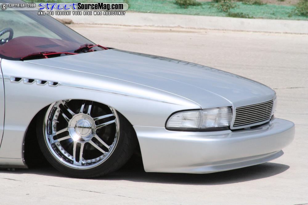 The paint was laid down after all of the body mods were completed as a solid base coat. After the base was done the only part of the build not performed by Ryan was next, the airbrush work. Wood grain was added by Chris Greene to keep the original Roadmaster feel, also added in were the Buick logo and the name “Roadmaster” on both sides mirrored to perfection.