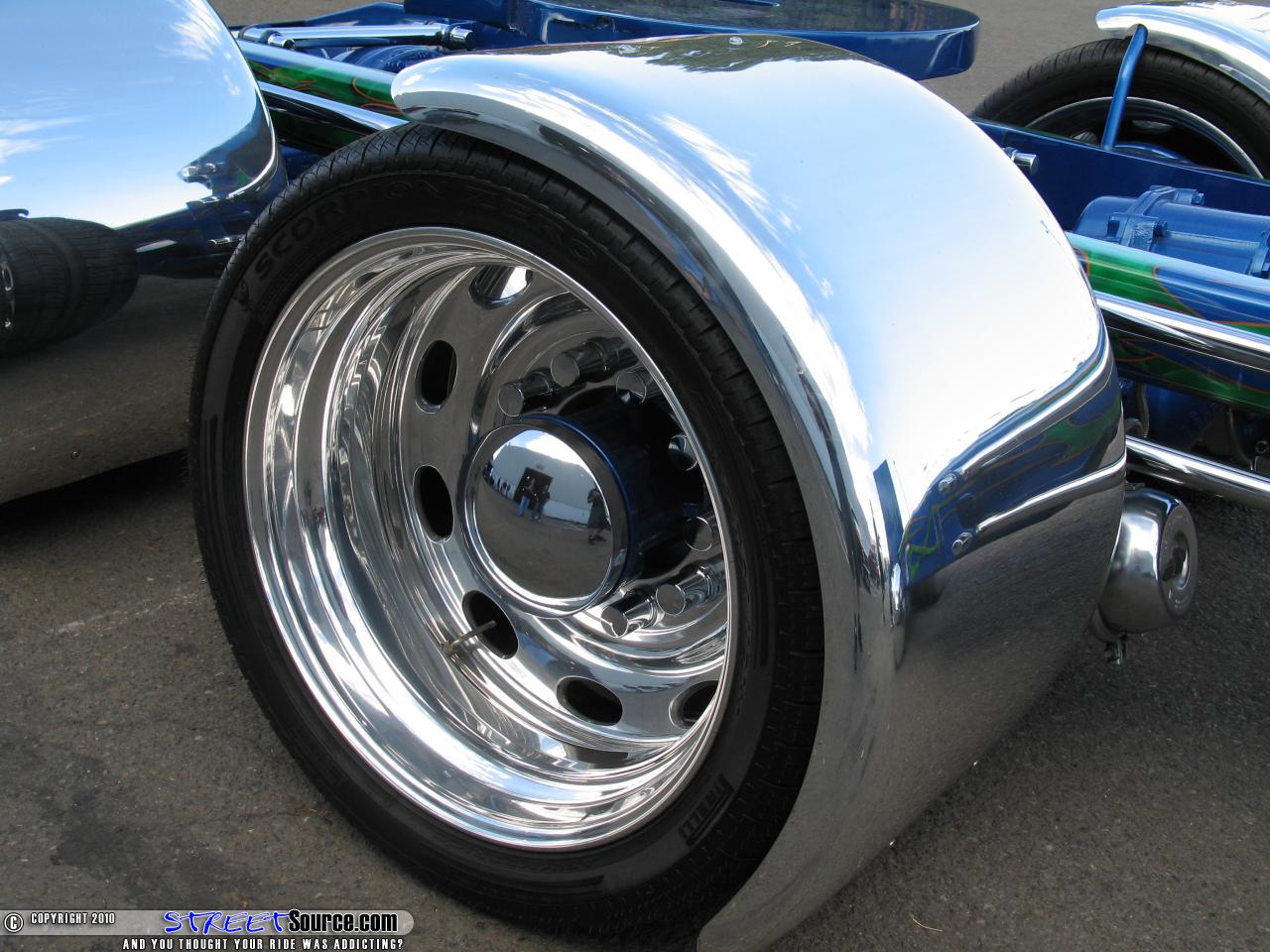 After buying into the family trucking business at 25, Botelho began building custom big rigs on the side, but never getting the chance to build the dream that he so long sought after. “I had been building custom rigs for myself mostly,” Botelho says. “However, someone would usually come along and buy them as soon as they were finished or sometimes even before I would get a chance to finish it.”However, in late 2006, Botelho was asked to participate in the Big Rig Build-Off at the Mid-America Trucking show in Louisville, Kentucky, a prestigious event in the big rig world. The rules are simple enough: each builder has 90 days to complete their build and it must be able to drive into the show under its own power. If the 90 day deadline wasn’t short enough, at the time of his invitation, Botelho was already behind seven days, leaving him with just 83 days to create this beast. Knowing it was time to turn his dream into reality, Botelho began making arrangements to begin the build.Finally being able to use all of the parts that he been hoarding all of those years, Botelho blew the dust off of the rolled over cab from back when he was a teenager and purchased a burnt up 1998 Peterbilt for the chassis and suspension. Deciding to build the frame at his friend’s shop, the truck was moved an hour away to John Chamoro’s shop, Solo Customs. It was there that Botelho and three friends worked tirelessly for fifty days to perfect the chassis and suspension, boxing and smoothing everything. Due to the very nature of the project, nearly everything had to be handmade, from the four link bushings to the rear fenders. The frame was notched over each axle to accommodate for the drop while six 400 psi Slam Specialties air bags provide the lift. Beyond the engine compressor for the air brakes, four Air Zenith compressors and six stainless air tanks provide the air management for this semi. No custom big rig would be complete without some giant rolling attire and thanks to his cousin, who happens to be a machinist, (6) 24.5 Alcoa’s were machined down to 24”, allowing them to be wrapped in Pirelli 305/35/ZR24s.
