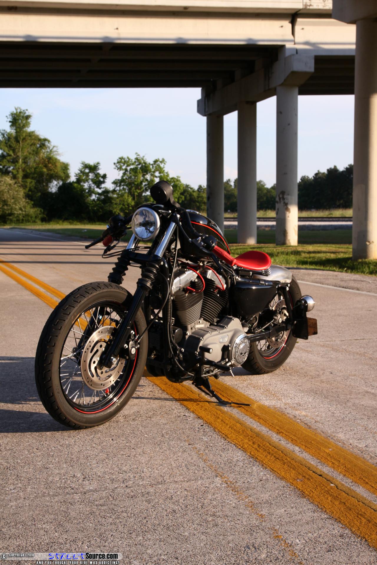 Now with the bike running good and looking better than Harley made it, he had to get it out there and ride. Since the speedo only goes to 120 he had to call in a favor, and got a friend to radar him and was clocked at 134mph. Not bad for a 550lb bike with a few less hp than a mazda b-series. Finally after all this was said and done Steven was at a stopping point on his bike and could get back to his true passion, his trucks. He poured his heart and soul into his purple 95 nissan hardbody that was totaled. So knowing his new froniter would be a slow build this Harley fulfilled the void for the build process. So the bike is done now, and the frontier is currently torn apart being layed out, its time for him to sink all his time and money :) into the truck so it can be filling the pages of the magazine soon enough.