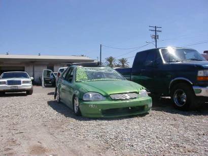 Let me explain that real quick by giving you a little bit of background. I’m Kevin Whipps, owner of the Bad Apple civic that was on the cover of the premier issue of Import Racer!. You might remember that in the article it was mentioned that I was a minitrucker at one point and still consider myself one to this day. My first truck was a 1994 Toyota standard cab which I bought in 1993. After lowering it and putting rims on it, it seemed that getting lower and lower was my goal. Back then hydraulics weren’t reliable or comfortable, and airbags were the newest thing that you had to sell your soul to buy. I did what any minitrucker would do; I cut out the fenders and laid that thing as low as possible, yet still being driveable. My front crossmember was about an inch from the ground, and I drove it that way every day. Then one day I had some problems with the truck. Turns out it would stall out occasionally while I was idling, or driving down the road. Ironically enough, it was the coil wire pulling out of the coil because I had relocated it too far when I cut out the fenders. However, it was in to my local mechanic where he could fix it. Instead of him calling me with the problem, he called my folks and let them know in no uncertain terms that my vehicle was unsafe to drive. The front crossmember was too low, the shackles were ground through, and the lack of front fenders meant a front end collision could kill me. As a result, my parents took my truck away from me and I cursed them for a long time. After getting my next vehicle, a 1994 Civic, and subsequently totaling it by getting hit by a drunk driver, I bought the soon to be Bad Apple civic. This is in 1995, and the import scene was taking off. After going through that phase for a while, it was on to minitrucking again by making my car into what you saw it become. While in the rebuilding process, it was decided to put a 40X40 slider in the car.