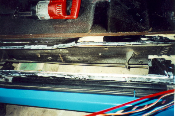 Next you can see how we remove a bigger section off floor so we can angle it to make it appear more stock. In this photo, you can see the section of rear cab wall we removed.