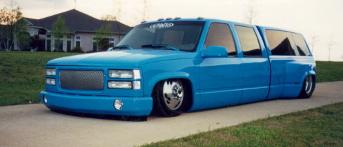 The next shot is the floor, tweeded, with the seats cut down and re-installed. The truck fully laid out The truck fully lifted JERRY LEWIS - 1993 CHEVY 6.5 TURBO DEISEL1-TON CREW CAB DUALLY - ALL THE WORK YOU SEE DONE BY -- KUSTOMWERKS -- 31/2" BODYDROP -- PERFORMED BY MATT (STRIP) LONG & ERIC ARRINGTON 901 884 8847