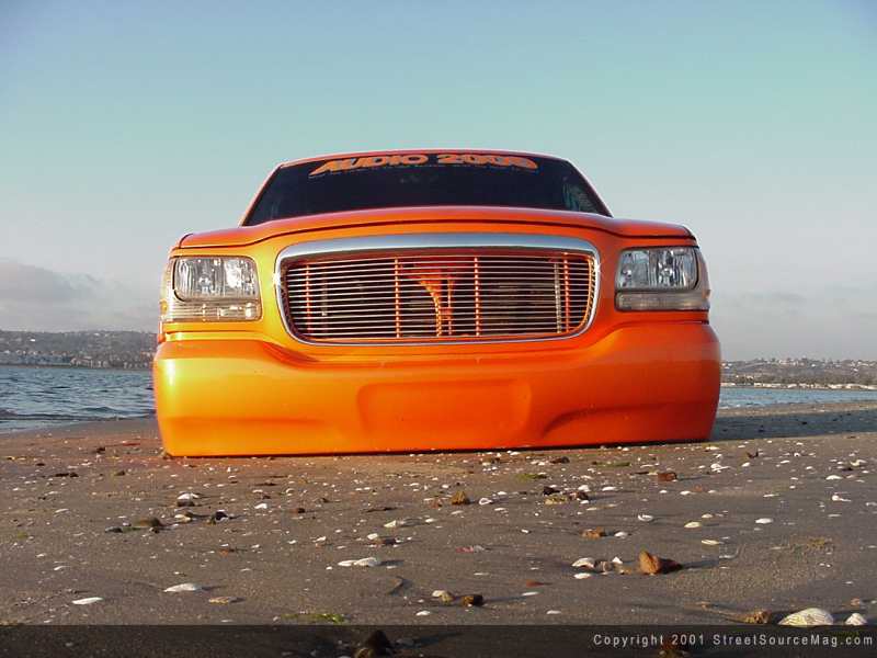 Not only was a Cadillac front clip installed, it was also completely molded together, for a true one-off look. With the new custom molded bumper, grille, hood and headlights, the new overall look that Wendy strived for was beginning to take place. The custom front bumper also was equipped with a molded Trenz billet insert.  Moving on, the wiper cowl was smoothed and the door handles were shaved. Other shaved items include the antenna along with the roof rack. Up top, you will find a power sunroof, provided by American Sunroof Company of San Diego, California.