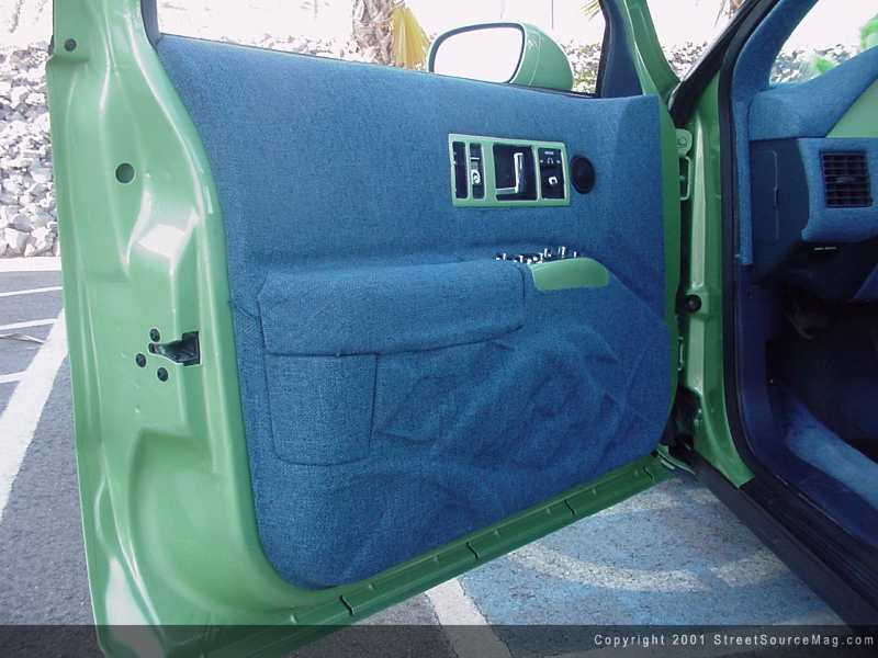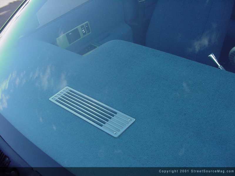 The interior was the next task at hand on the list of things to do to the Caprice. To get started, Jeremy decided to handle this himself, with some help from Jeff Prespent of Mesa, Arizona. First on the list, the dash and the headliner were both pulled and wrapped in blue tweed.   | Billet vents are always a nice added touch with any interior. |