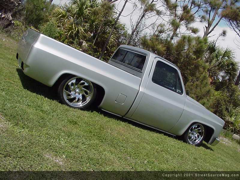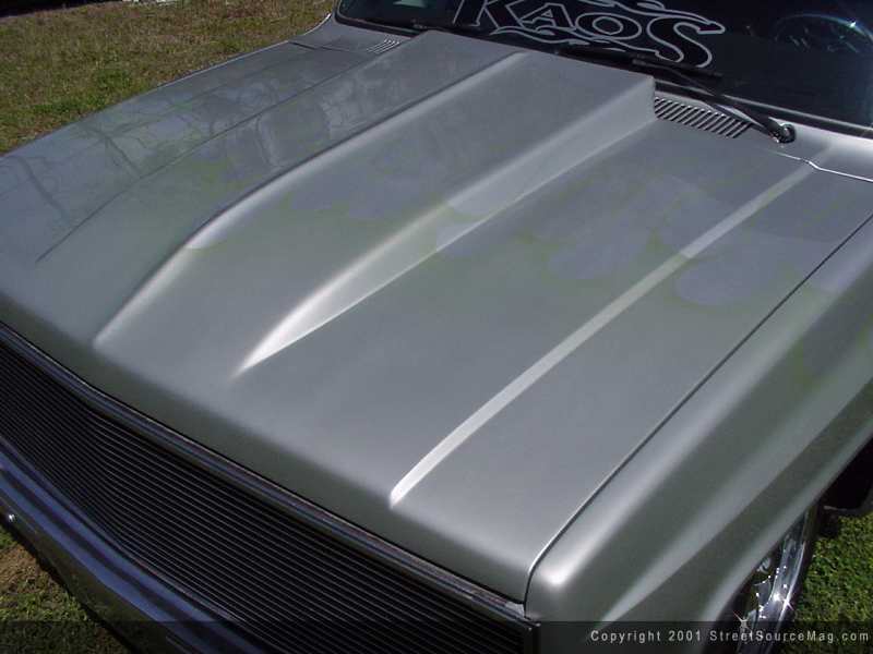 Finishing up the body mods came in the form of installing a fiberglass cowl hood and an East Coast Customs phantom grille. With the body finally mods finally coming to a close, Bradley allowed the crew at Competition Paint &Body to complete the exterior of his truck by adding a special paint scheme. First, Competition sprayed Sebring Silver Metallic over every inch of Bradley's Chevy. Before anyone could even be happy about the new-found color, Competition went back and laid down the blue and green ghost flames that run from the front of Bradley's Chevy, past the doors. The crew at Competition sprayed the Chevy with many, many coats of clear, giving Bradley's truck the desired shine he was striving for.