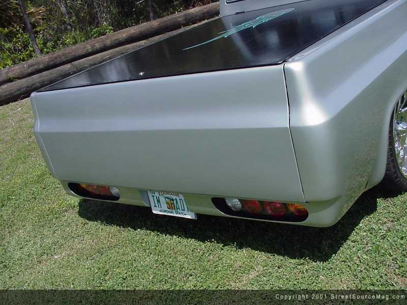 Still not quite what Bradley was looking for, Competition went back to work shaving items that were useless. The tailgate handle was the first item to go and the rearview mirrors would follow suit.  The emblems were pointless, so they were tossed in the garbage as well. The stake pockets were no longer needed a show vehicle and were shaved, along with the side markers and cargo light.