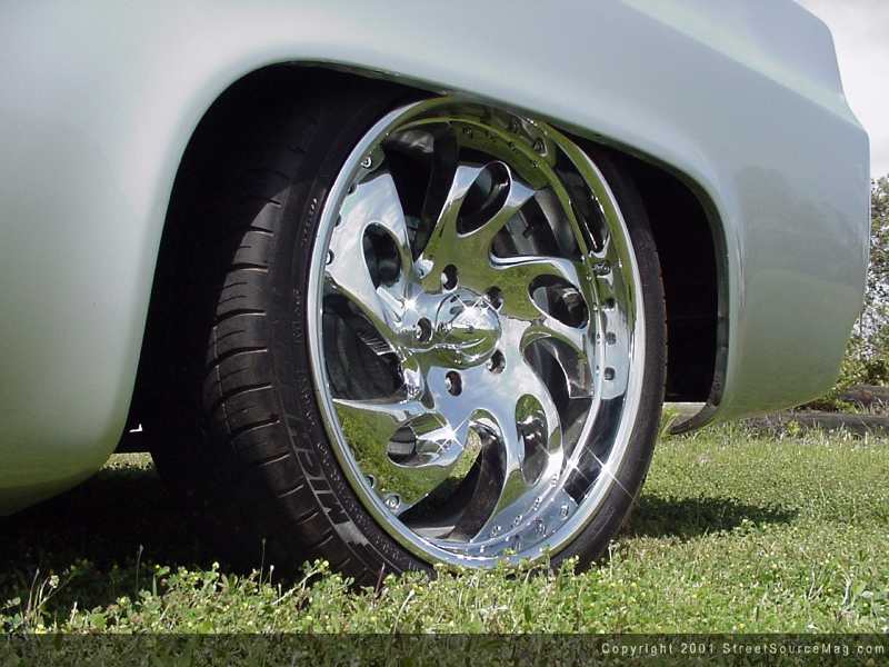 Anybody knows that with a custom vehicle a suspension tweak is always a must. Bradley was able to see that low was the best way to go. Wanting not only a low-down stance, but adjustability on the fly, Bradley turned to C&R Autobody in Tallahassee, Florida to rework the Chevy's stock suspension. In the front, DJM 2 ½" drop spindles were bolted up to the factory suspension and Firestone airbags were custom fit in the front of Bradley's Chevy. In the rear, the factory leaf springs were left in place, but Firestone airbags brackets were built. A custom C-Notch was also built, allowing the Chevy more travel room. At all four corners you can find Doeschtech shocks, to smooth out the ride quality. In the bed, a custom built enclosure houses the custom painted, seven gallon airtank, with Bradley manning the controls of the manual valves from the cab of his Chevy.
