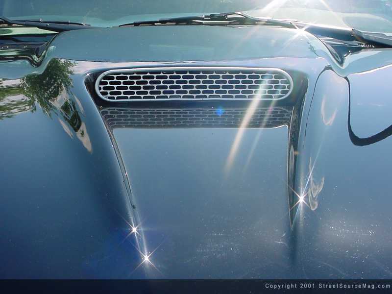 As soon as the 17k was laid down, Chris immediately started adding to the outside appearance of his truck. He swapped his plain stock hood for a more eye-appealing fiberglass ram air hood from East Coast Customs. Along with the hood swap, Chris decided to install a Street Scene speed grille, helping set the front-end of his mini off.