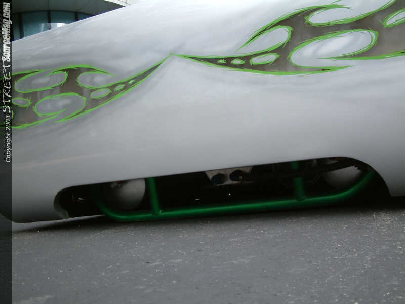The marker lights in the front bumper where shaved along with the bumper and valance being molded together. The rear bumper was a creation of Josh's own, like most items found in this build up. The door handles were shaved along with the gas filler door. Now to fill the gas Josh goes directly to the fuel cell located under the tonneau cover.