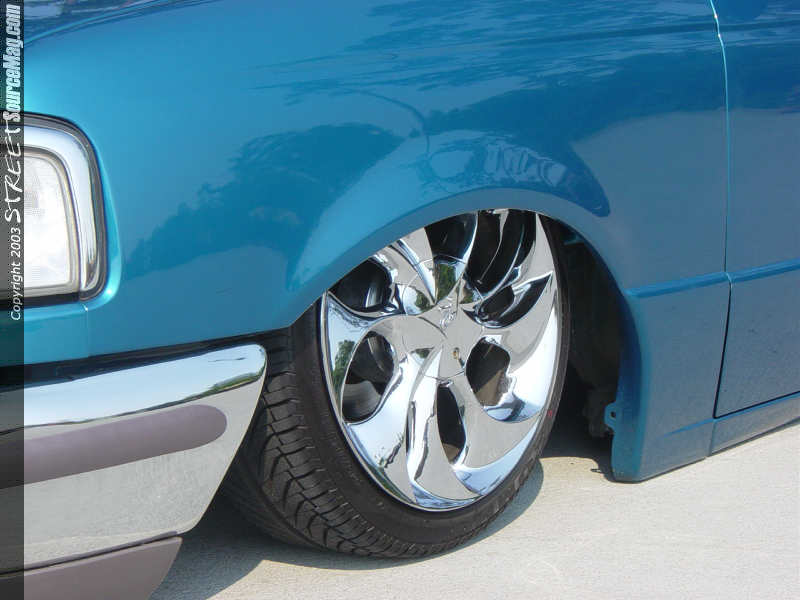 The truck is a 1997 Ford Ranger Step Side standard cab. About four years ago he decided to tear it apart to build to the level you see here. After stripping the body off the frame Lil' Bubba with the help of the guys at Str8twizted Customs in Kannapolis, NC decided to do a 3.5" body drop. While the frame was just lying in the shop, they decided to do a full custom rear frame clip using 2x3 square steel.   After building the C-Notch they decided to add a custom flamed bridge,