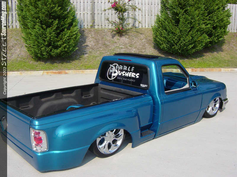 The gas door and tailgate handle were also shaved while the tag was relocated at an angle in the tailgate partially overlapping the body lined for that added difficulty factor. One last touch before any paint could be sprayed was to smooth out the firewall.  Now that all the bodywork was done, which was done by Michael Medlin from Wingate, NC, it was time to call up Chris Stilwell also from Wingate, NC to spray the PPG Metallic Green with House of Color Blue Pearl. Once the paint was done the inside of the bed was Rhino lined for protection.