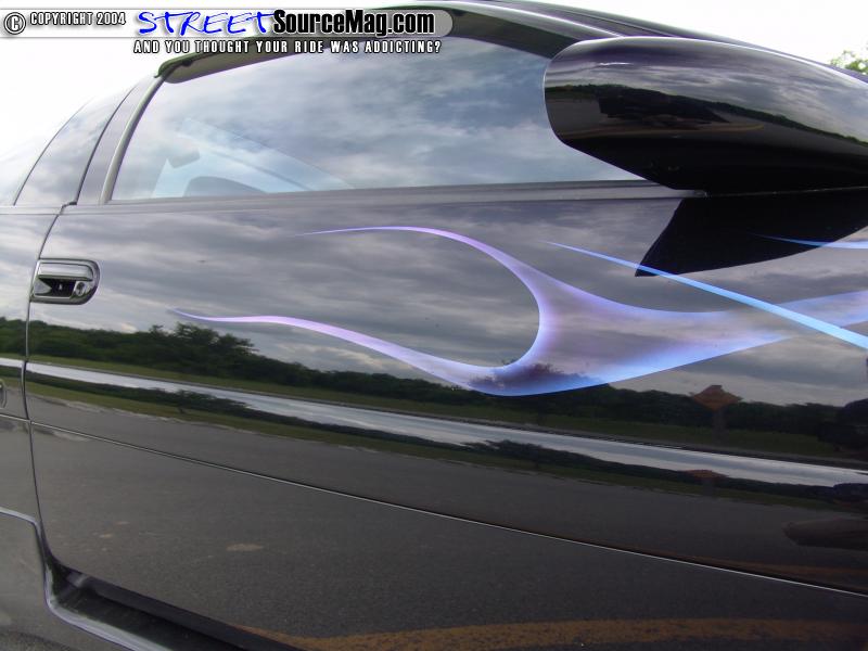 Being she wanted to bump the look of the car up a little bit, she opted to have a set of airbrushed blue and purple flames painted on the front half of the car. All of the paint and bodywork was done by Mark Brown from Bristol, Tennessee.