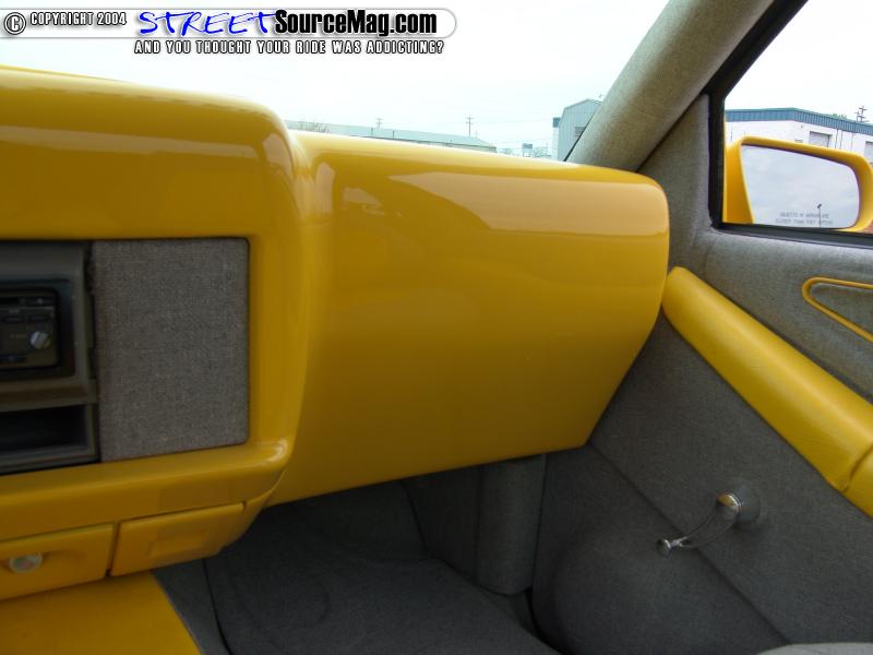 The exterior wasn’t the only think that was given the custom paint job. The dash was pulled out and completely shaved. The glove box, vents, airbags and several other panels were filled and smoothed before the yellow paint was sprayed.