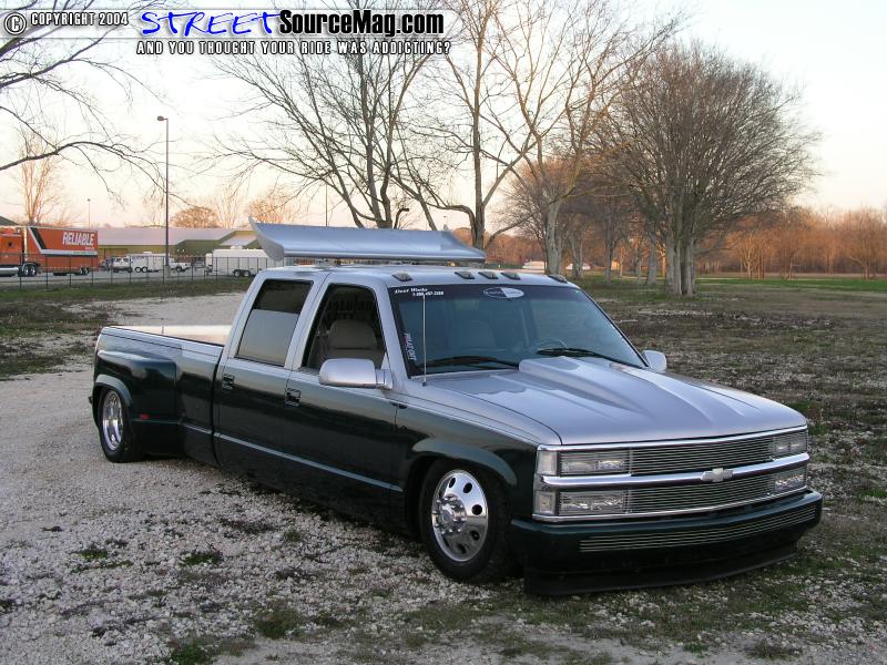 Kevin’s next line of business was to change the appearance of the pig to that of a prize winning swine. He started by adding a Goodmark 3” cowl induction hood. After the entire body was smoothed to perfection Kevin applied several coats of RM-Diamont Green and Silver base coat to the entire truck in a two-tone fashion.   Once the base was dry Kevin wanted to separate the two colors by airbrushing the appearance of a chrome stripe. Last but not least black and blue pinstripe was added for more detail.