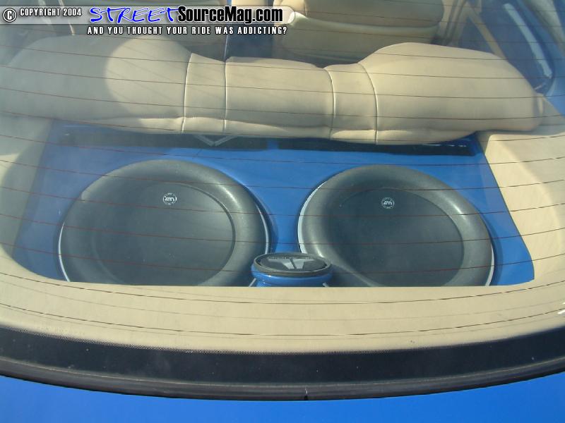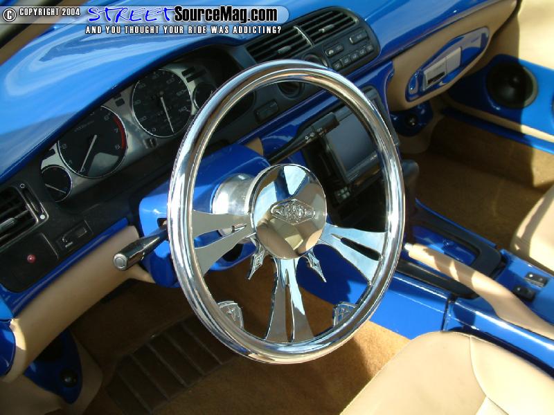 Helping to keep the current Erick would then install 2 Optima yellow top batteries, one 15-ferret cap along with an assortment of high dollar wiring and Dynamat. Finishing off the interior, Donnie would have the seats wrapped and stitched in tan vinyl with ostrich inserts. Billet inserts where installed into the stock gauge cluster and a BAD billet steering wheel would be installed for the final touches.