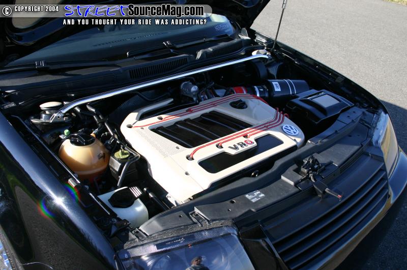 The VR6 motor was fitted with a Carbon Dynamic Air box by BMC, ABD big bore intake, VF-Engineering engine pendulum mount, and a Eurosport hidden tip exhaust. Manny can hug the corners at top speeds thanks to the Koni Adjustable shocks with Eibach Sportline springs, AutoTech front upper strut bar and front sway bar, Neuspeed lower front tie bar, AutoTech rear sway bar, RSD Trunk bar, and Speed-Styez upper inside seat belt bar. Manny’s Jetta incases some serious bracing.