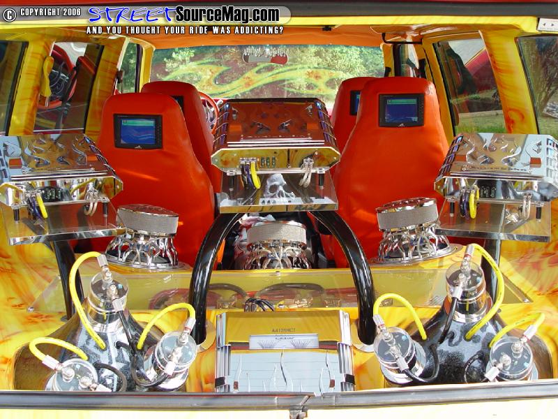 Next it would be time to head to the interior of the Van. For this Scott would turn to Tattoo's Upholstery and Eric Hanna from Independent Customs. While in their hands the interior would be set up with a BAD Billet Steering Wheel, Street Beat Customs Ragtop, custom wrapped bucket seats and diamond plated floor mats along with trim. The interior would then be cased in fiberglass through out to include the dash and door panels.