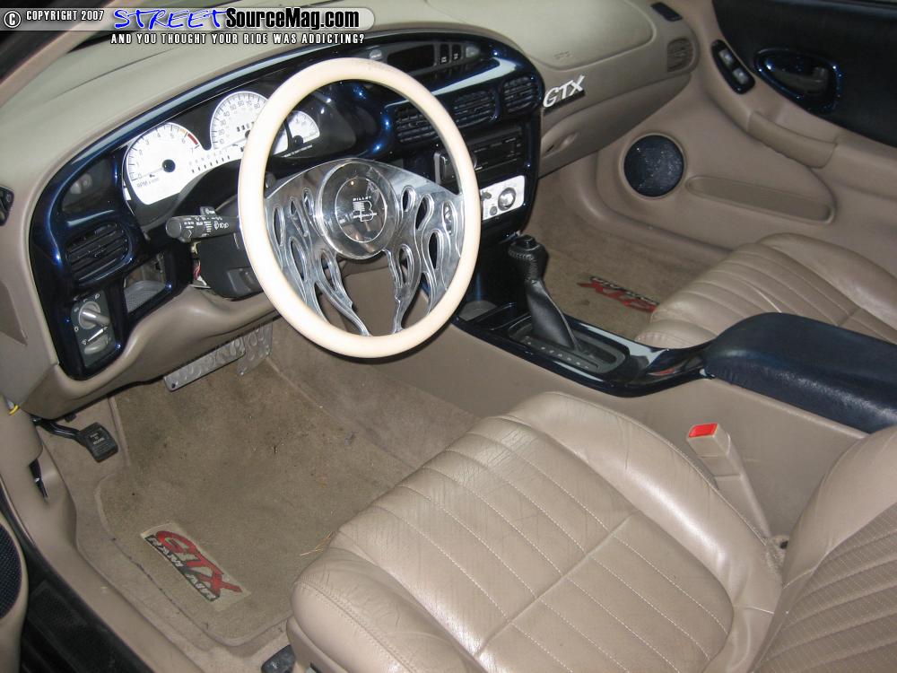 Keef’s gun also made its way inside the car spraying several parts to match the exterior and Jackie Wade sprayed a custom Pontiac logo into the center console. Blue and tan leather make the long trips to car shows that much nicer. Being the billet junkie Chad is, a Billet Specialties Flame steering wheel replaced the factory one.