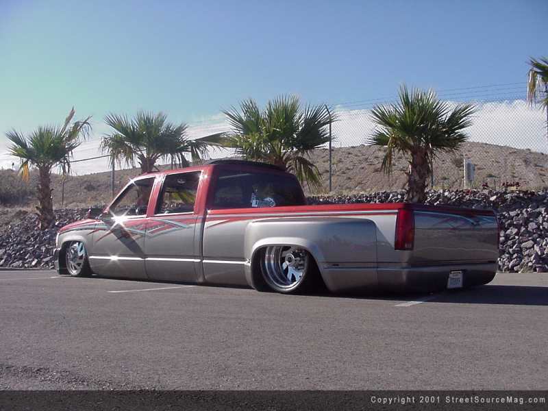 In February of 1999 Bill laid down a cool $28,500 to get things going. After a grueling 2 years of blood, sweat, tears and lots of money; Bill would find is show winning Dually being used for body laying spark displays along with towing the shop's enclosed trailer from sea to shinning sea. To start bringing the vision to reality, the crew at Ekstensive would begin their work on the suspension of the new shop truck. The front would be the first to receive the new make over. With utilizing a set of Bell Tech drop-spindles and KYB shocks, the Dually was well on the way to stardom. Next they would be quick to weld in a set of Ekstensive airbag brackets, which would house the Firestone airbags for ride height adjustability. To bring air to the bags at sudden response, the use of 3/8-inch airline along with Ekstensive valves would be the solution. The front now laying flat, it was time to move to the rear.