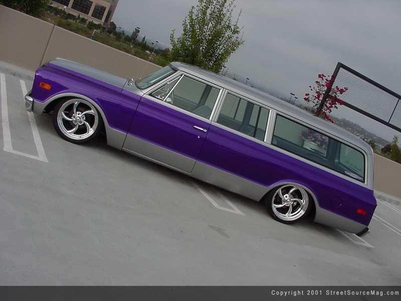 With the materials and knowledge that Mark possesses, the paint would become the first eye-catching element to this clean Suburban. Utilizing PPG paints, Mark decided to go with a two-tone paint job using Porsche silver along with a custom blended purple. After many coats of clear, one can see that time was taken to assure nothing but pure professional work was applied. Mission Viejo Auto Collision is responsible for all of the body and paintwork found on the '69 Suburban.