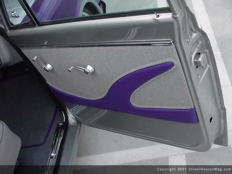 Bringing the panels together, the seats were stitched with the same gray and purple tweed.  Having an older ride, you will usually encounter metal panels. With Marks '69, all metal panels would be sprayed with a coat of the Porsche silver paint including the dash.