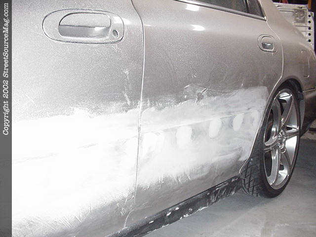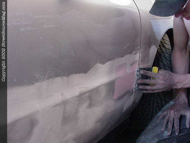 10. Once again sand down the door after applying spot putty to ensure smoothness. 11. Once you are confident that the doors are smooth then tape off the doors and lay down your primer.Work done by:Waldo's Custom's and RestorationJohn "Waldo" Bartels208-283-3305
