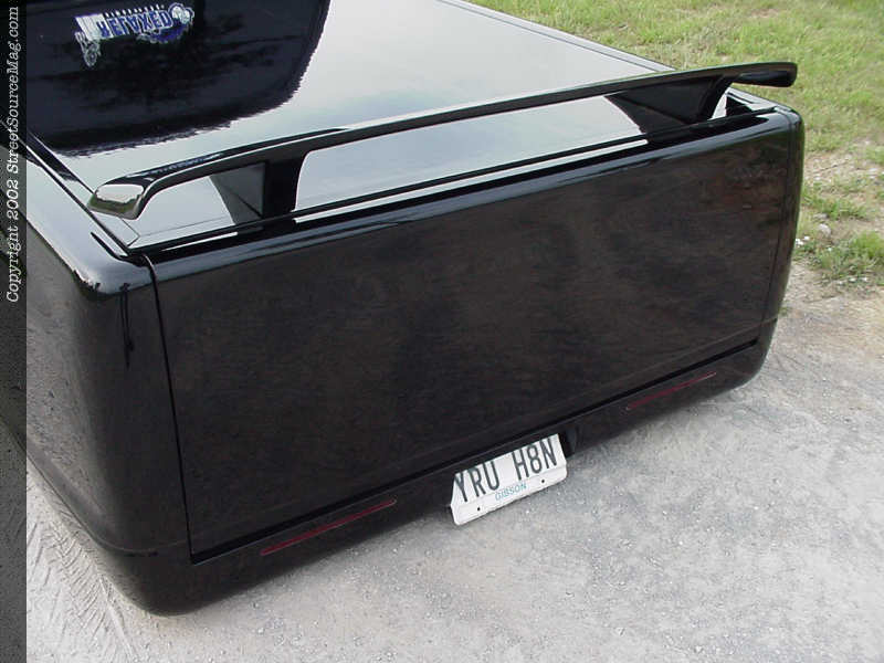 First, the normal items were removed from Josh's Dodge including the door handles, emblems, 3rd brake light and antenna. The gas filler door was also shaved and the filler neck moved to the inside of the bed.  Continuing with the shaving process, KUSTOMWERKS smoothed the entire rear end of Josh's Dodge by shaving the tailgate handle and the taillights, before molding in a Sir Michaels steel rolls pan.