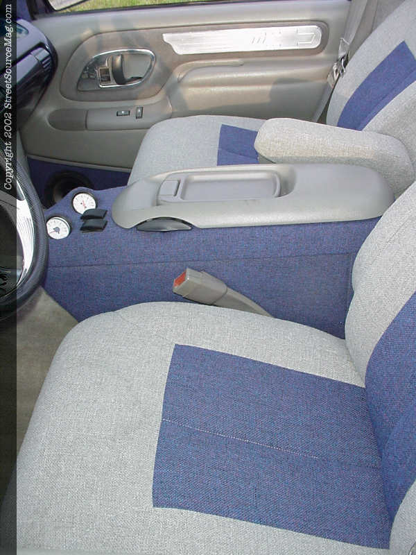 Inside the cab, Nelson used his own talents with the help of his friends to create a definite award-winning interior. Kenny Shaw from Troy, Tennessee got the ball rolling by shaving the headrests and stitching the stock seats in interlude gray and Nordic tweed. The door panels were removed and special pods housing the Audio Art separates were created, before being wrapped in matching tweed. Other items including the headliner and floor were also color matched utilizing interlude gray and Nordic tweed. The dash was removed, sanded and prepped by Nelson and his friends before KUSTOMWERKS laid down the glossy Indigo Blue paint, giving it a special appeal.