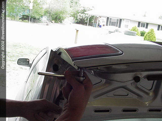 2. Once the emblems are removed you'll then need to remove the lock. The tricky part is getting the lock bar off of the lock itself. 3. Next you will need to remove the inner taillights by removing 4 bolts from each light and unplugging the light itself. With my model, the chrome strip above the license plate needed removed along with the lights for the license plate.