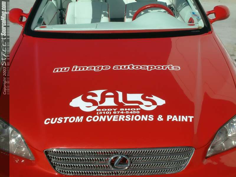 With the exterior mods complete it was time to prep the car before laying down the red basecoat topped with an orange pearl. Senor Sav of Inglewood, CA is responsible for the paintwork. Not yet finished Sway would have Dave at Nu Image lay down some white and chrome graphics.