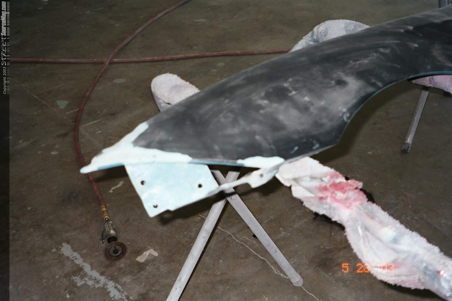 After it is all done, porkchop repairs the imperfections in the z3 fenders (it is an aftermarket part and there are always imperfections) Photos of the repairs after the 2nd coat of glaze before it is blocked. After this, the fenders were block sanded and prepped for paint. PorkChop sands like a madd man on minor repairs dents and dings in the body. For the most part the body was straight, but perfection is always good!