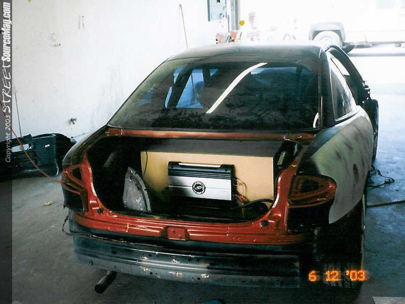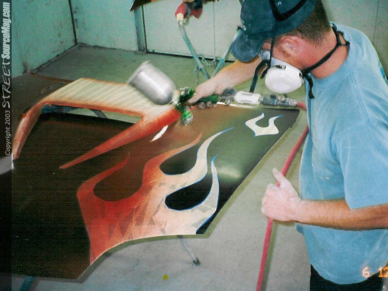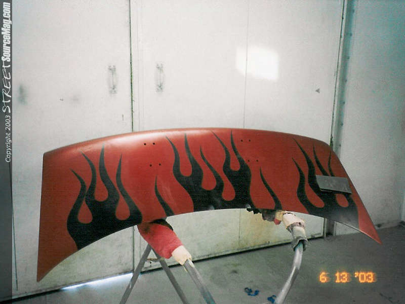 Here you can see the door jambs painted. No color change is complete without doing the jambs. Trunk area jambed in. Porkshops immaculate creation getting sprayed by James "jimmy shine" Houser.
