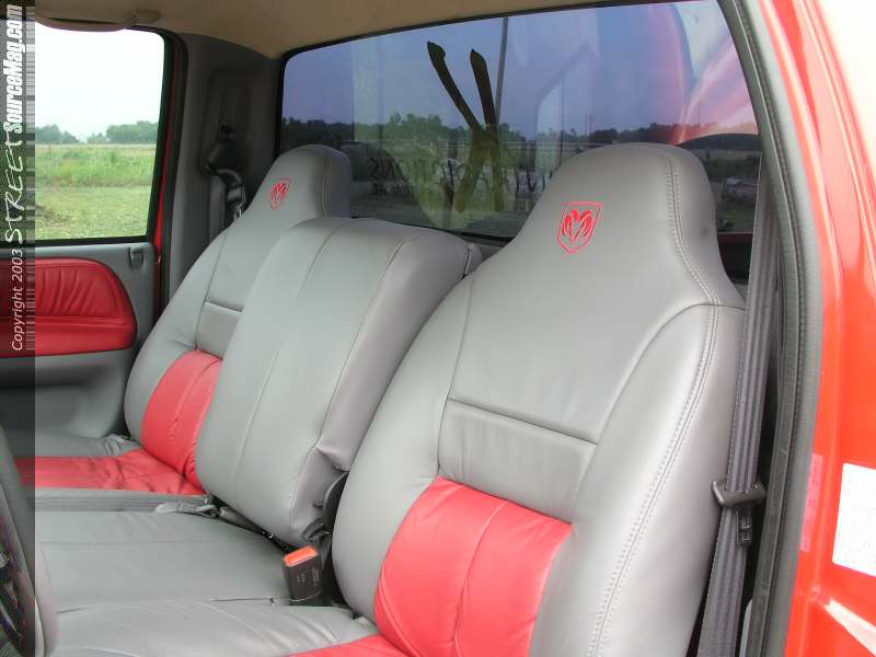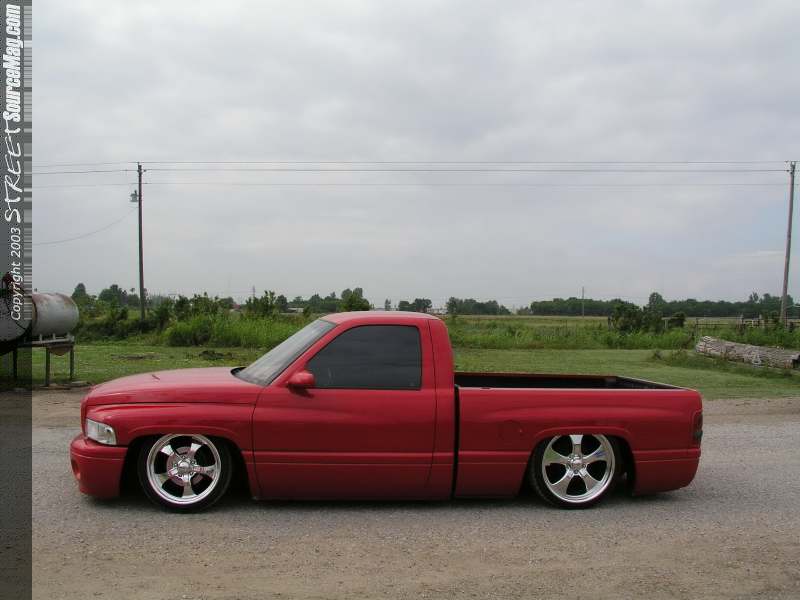 Matthew liked the clean design off the factory Dodge Ram Sport front bumper valance and grill combo, so after a quick stop at the local Ram dealership the new items were ready for Mike to add to the Ram. Matt prepped the truck for several heavy doses of 2000 Dodge Flame Red. Once Matt had the Ram looking it's best a billet Trendz insert was added to the grill and front valence areas.