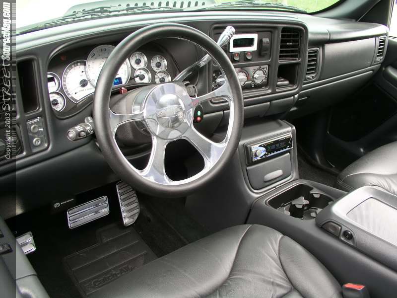 So Brooks opted for Budnik Tiller wheels in the form of 20x8 front and 20x9.5 in the rear. The front wheels were wrapped in a 245/40/20 Michelin Pilot skin while the rear received a 245/35/20 for better traction. Now that the Denali's outside was looking righteous it was time to give the interior the same treatment. So Brooks covered the factory interior in dark granite leather from KatSkinz. A Wabasto 41" electric sunroof was then installed to allow the Arkansas sky to shine thru. An Escalade instrument panel was installed to keep a constant eye on all functions. To finish the interior treatment off billet accessories were added to the now clean interior. Brooks decided that an Alpine CDA 7864 headunit would fit just perfectly into the GMC's buildup and backed it up with a combination of Kicker Comp highs, mids and subs. Alpine and Kicker amps were then installed to power the entire system.