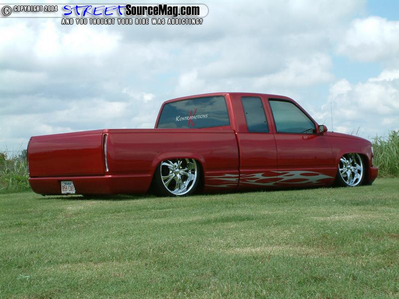 Four 3-gallon tanks, nitrogen, Parker ½ inch valves and ½ inch line would run the system. Belltech drop spindles and control arms would then be installed to help bring the front down with the rear. The battery tray would need to be modified to allow room for the Boss 304 22x9.5 inch wheels wrapped in 285/30 Dunlop rubber. It would now be time to move to the exterior of his new ride.