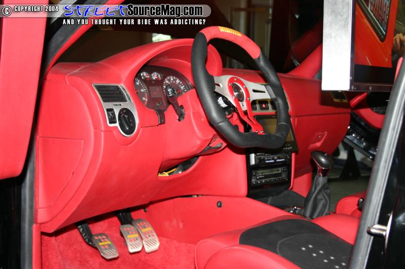 With all that done to the exterior of the car, Kindig-It Design knew they had to completely change up the interior. And they knew exactly who could do it. Justin Stephens of JS Custom Interiors started out by wrapping the whole dash in red hide. The door panels were also wrapped in red hide, and black inserts with aluminum breather holes.   The headliner was custom built and wrapped in red hide as well. A custom built rear seat surround and sub enclosure bring a more custom look to the rear, while the chopped and shortened Momo single seat finish’s it off.