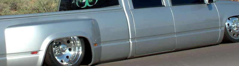 Most shop owners have knowledge that building a vehicle they can grab attention with whether it’s rolling around town or taking the beast to a show end up with some crazy builds will in turn help business. Well for Kevin Brumfield of the Phoenix, AZ area and owner of Grunion Fabrications would end up building such a vehicle. The beast of choice would be a 1996 Chevy Crew cab Dually. While building the dually Kevin would put in place some crazy but subtle mods making one of the cleaner Dually’s around.