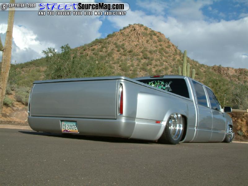Four FABCO air valves would be used to push the air into the bags while 2 VIAIR 400’s keep the air tanks full and ready for use. With the frame laying out flat it was time for Kevin to apply a 3-3/4 inch body drop to lay the rockers flat on the asphalt and help tuck the 19-inch Alcoa wheel custom made to fit the Dually.