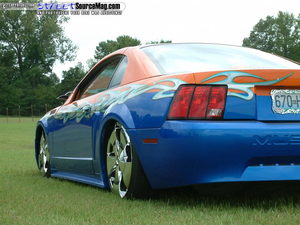 Needing to touch every aspect of the Mustang, Joseph would turn his attention to the engine bay. For starters the V6 would be equipped with a crankshaft out of a 4.2 F150. Next a stage 1 port kit by Michigan mustang would be installed. Helping with the eye candy Joseph would then install blue wire loom along with a polished upper intake. A set of Hedman headers with stainless 2.25 exhaust capped with a Flowmaster muffler would finish things up.