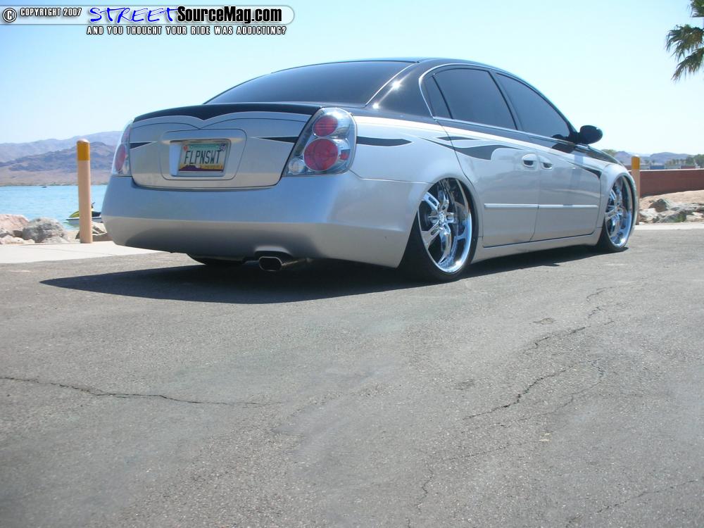 Two Viair 450 compressors would then be installed to fill two chrome 3-gallon tanks. With the suspension in place the Altima would now lay out on 22x8.5 Helo HE834 wheels wrapped in 235 Toyo Proxy 4’s. Behind the wheels and finishing off the drive train would be a set of HP Motorworks slotted, cross-drilled rotors.