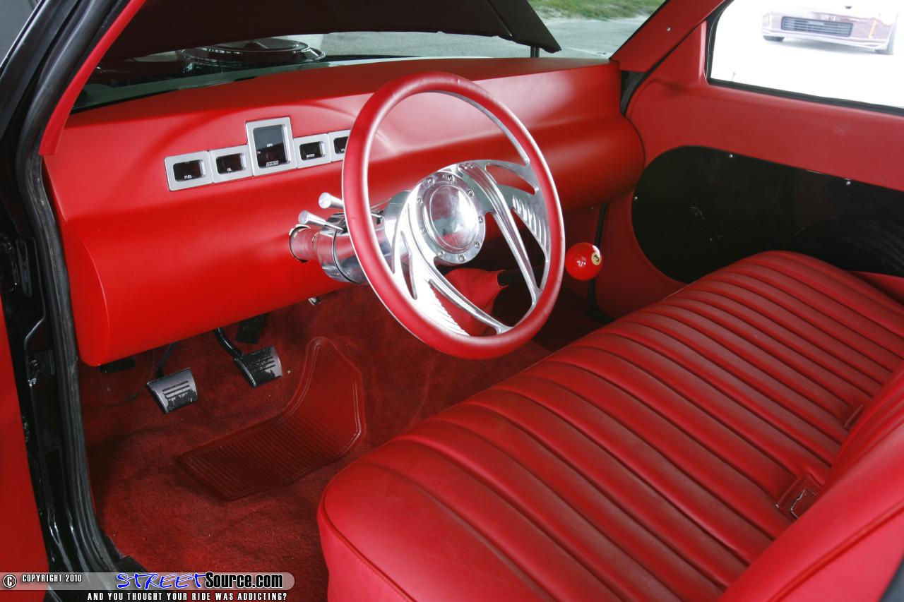 The LowdownRolling AttireWheels (Front):18x7 Billet Specialties GTX03 (Rear): 20x 8 Billet Specialties GTX03-wheel centers been painted black and the hoops left polishedTires (Front): Nitto NT555 225/35ZR18 (Rear): Nitto NT555 245/35ZR20Chassis ModificationsSuspension type: AirSuspension (Front/Rear): firestone 255c bagsSpindles/springs: two-inch BelltechValves: 3/8-inch SMC valvesCompressor: Viair 450Air line: 3/8-inch soft lineFrame mods: rear step notch and bridge with a Pete and Jakes modified four-linkFrame material: 2x4 square tubingGas tank: air tank that we had pressurized and converted to a gas tankDetail work: the frame is painted black to match the truck and the four-link and bridge is painted Viper Red to match the bedliner and interiorPerformed by: Justin Griffin of Twin States Customs City/state: Meridian, MS Body ModificationsShaved: Completely! Door handles, taillights, body line, tailgate handle, gas tank door, cab seems, cowl panelBody-dropped: 3-1/4 inchesBack end: Custom roll panTaillights: Hagan flush mount 12-inch street rod LEDsPerformed by: Eli Griffin of Twin States Customs and Josh “The New Kid” Ellis City/state: Meridian, MS PaintBrand and color: Sikkens Jet BlackStyle: slick as hellPerformed by: Eli Griffin of Twin States Customs City/state: ¬Meridian, MS InteriorSeats: Bench seatMaterial: Lipstick red leatherDash: custom made painted flat redDoor panels: lipstick red leather with black door insertsFlooring: torch red carpetHeadliner: lipstick red leatherGauges: Dakota DigitalPerformed by: seats by Tracy Swanner of Southern Upholstery and the dash and door panels done by Robby Odom and Justin McCary of Selective Audio City/state: ¬Meridian, MS Engine/PerformanceModel/Year: 2.8 liter V-6 Detail work: the motor has been painted Viper Red to match the rear suspension and the truck and the pulleys, alternator, air cleaner, and intake manifold have all been chrome platedPerformed by: chrome plating by A-1 plating of Tuscumbia, AL and engine painting by owner’s Dad Jimmy Carr City/state: ¬Meridian, MsSpecial thanks by owner:First and foremost to my son Hagan who is 3-years old and has required a lot of visiting with me at the shop rather than at home, my parents for this graduation gift 12-years ago, Justin and Eli Griffin of Twin States Customs and the “new kid” Josh Ellis for making this possible when it came crunch time to completely build this “murdered out” project in three weeks time. And as always can’t leave out the family with the stars and bars Relaxed Atmosphere.