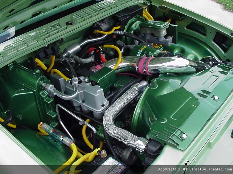 For listening pleasures, TJ called Jerry (Bull) Whitt to install a earth pounding stereo that would let the world know he was coming long before they could see him. Whitt started with a Clarion 9375 head unit and Clarion equalizer. Three JL Audio 12w6's and Punch mids and tweets let the sound be heard, while Punch amps were used to power the whole system.