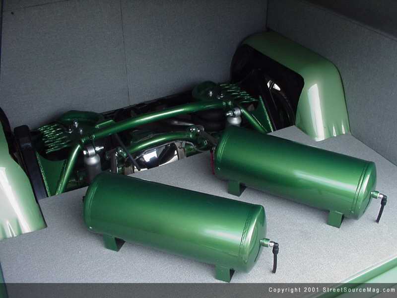 TJ picked up a set up '98 Chevy Blazer power bucket seats and had them recovered in light grey and slate grey tweed. The headliner, complete with biohazard symbol, was wrapped in slate grey tweed also. Everything that could be removed was wrapped in either slate grey or light grey tweed. Billet goodies here and there give TJ's interior accents. Wilbanks Auto Trim was responsible for all interior work performed on TJ's Sonoma.